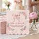 Fira två milstolpar under en och samma vackra tillställning med dessa eleganta, koketta servetter. Med en delikat roseguld tonad rosett, en klassisk babysnurra och en vigselring fångar designen perfekt temat "Slå knutar och vagga vaggan".