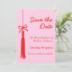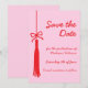 Se till att dina nära och kära markerar i sina kalendrar med detta eleganta examens-spara-datum-kort! Med en handritad tofs och en chic coquette-stil bow, är denna design både stilren och festlig. Den handskrivna kalligrafistilen lägger till en personlig och modern touch, medan det feminina rosa och röda färgschemat skapar en livfull och sofistikerad look.