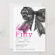 Coquette Black bow med snöre och en shock rosa bakgrundsinbjudan på 50 år. Utforma med "Hej femty" och en redigerbar mall med information om party, register och OSA.