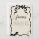 Lägg till en touch av elegans på din presenttabell med vår Coquette Black-båge Favors-skylt. Med en stilren coquette-båge med spöken/fladdermöss och orden "Favors" tillsammans med "Vänligen ta en! Tack för att du firar med oss", är denna bordsskylt ett charmigt sätt att guida dina gäster.