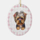 Coquette Yorkshire Terrier Dog Pink Gingham Bows Julgransprydnad Keramik