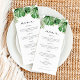 Den här menyn innehåller tropiska vattenfärgsfärger i handflatan löv och ett typsnitt för eleganten. Den här menyn är perfekt för ditt målbröllop, din servosert, en könsneutral tropisk babydusch eller någon annan händelse. Redigera enkelt *de flesta formuleringar för att uppfylla dina behov.