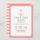 Snyggt spara datum meddelande perfekt för ett sommarbröllop eller ett tropiskt destinationsbröllop illustrerar på ett vackert sätt ett ankare och ett elegant nautiskt rand mönster på baksidan. Besök vår butik om du vill ha fler alternativ för färg och matchande produkter.
