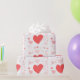 A cute, repeating seamless pattern featuring a dense field of scattered hearts in shades of coral and blush pink on a white background. Ideal for Valentine's Day.