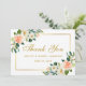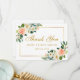 Watercolor Coral Blommigt Guld Bröllop - tackkort