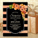 Svart och faux glitter coral stripe blommigt överraskningsmiddagsinbjudan.