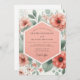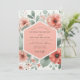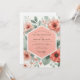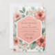 A charming display of soft coral blossoms and delicate greenery creates an ethereal atmosphere. This design evokes a feeling of romantic elegance with its gentle watercolor aesthetic. The muted color palette offers a timeless and enchanting appeal for your special day.