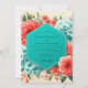 Coral Blue Floral Romance Wedding Inbjudningar