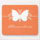 Söt och enkelt Butterfly Swirls Anpassade Mousepad med en söt butterfly silhouette och en delikat elegant snurrande gräns. Den här vackra muspekaren skulle ge en fin accent till vilken arbetsyta som helst när den anpassas efter ditt namn eller annan personlig. Lägg bara till en egen text i det medföljande utrymmet eller klicka på knappen "Anpassa" om du vill ändra typsnitt, färg eller lägga till eller ta bort text.