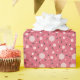 A modern geometric pattern featuring soft blush hexagons and dark charcoal triangles set against a vibrant coral-pink background.