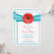 Coral Gerbera Daisy Aqua Ribbon Möhippa Inbjudningar
