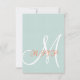 Elegant Coral, Mint Grönt Linen Rustic Bröllop OSA Card med monogramdesign av Elke Clarke ©. Anpassa med ditt monogram, namn och bröllop färg. Lägg till all bröllop-svarskort på kortets baksida med hjälp av Zazzles enkla använda-menymeddelanden. Mint grönt Linen är en utskriven fotoeffekt. Kommer med tomt vitt omslag.