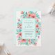 This design features a vibrant watercolor palette of coral pink and mint green. Delicate poppy blossoms and lush teal leaves create a lush arrangement bordering the center. The painterly style offers an airy and cheerful atmosphere perfect for a bright seasonal event. Soft washes of aqua provide a refreshing backdrop to the warm floral tones.