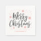 Den här anpassningsbarna kommer pappra napkin att ge dig mer snyggt till din julafton party. Den här designen innehåller skript med texten God jul och snöflingor i korallrött färg. Perfekt för en modern julfest för företag/företag/företag/familj. Matchningsinbjudningar och party-tillbehör finns i min butik BaraBomDesign.