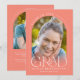 Den här korallenkla minimalistiska studenten-utlysningen har en delikat båge ram, två fotomallar och elegantens moderna typografi.