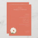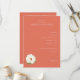 This is a minimalist style image featuring an elegant wedding ceremony program for Isabella & Patrick. The warm coral background sets a soft and inviting tone, complemented by the delicate illustration of a white peony at the bottom left corner. The text is neatly organized in a clean font, detailing each part of the ceremony from procession to recessional. It exudes sophistication and charm, making it perfect for couples who appreciate understated elegance on their special day.