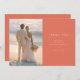 This is a romantic style image featuring a couple on their wedding day, standing hand in hand on a serene beach at sunset. The soft golden hues of the setting sun cast a warm glow over the scene, blending beautifully with the gentle waves and the bride's elegant white gown. A heartfelt "Thank You" message from Mr. & Mrs. Thompson adds a personal touch, making it perfect for expressing gratitude to loved ones after a special celebration. It evokes feelings of love, warmth, and appreciation.