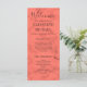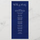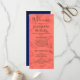 Ett marinblått texturerat mönster är bakgrunden till det levande korallets Bröllopsprogram. En modern elegant som lätt kan ändras till din egen information. Ett bröllopsprogram för stående ensam som också ingår i en Bröllop-svit från Just Bra Design.