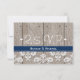 Söt coral peach HYDRANGEA BRÖLLOP SVARAR MED ett trästängsel, ett antika dammmönster snöre bakgrunden och sydd marin blå hjulling på BACK som KAN ANPASSAS FÖR ATT SÄGA VAD DU TYCKER OM PÅ BAKGRUNDEN. Denna OSA är perfekt för land, bondgårdar, trädgårdsodling party eller barnyard stil bröllop, party eller förlovning middag. Designad av Chrissy H. Studios, LLC. Alla höger reserverade.
