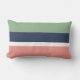 Coral Navy färg palette lumbar dekorativ kudde med vågrät rand av skuggor av självklar grönt, korall och marin blått för din inspirerade hemdekordesign.