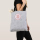 En palett med grått och korall i trendig färg gör att denna monogrammade väska är ett chic sätt att bära med sig livsmedel eller vardagsessentiella material. Utformningen har en modern quatrefoil mönster i blek grått och vitt, med ett monogram som är inklämt i konturerna i den kontroversiella sumpkorallen. Anpassa med ditt tre första monogram eller ta bort provet initialer och korallmärket inslag om du inte anpassar dig.