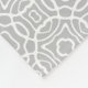 Vår plusfilt i ull har en lös, organisk quatrefoil mönster i chic grått och vitt, och kan vara personlig med dina tre första monogram i kontrasterande sumpkorall.