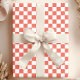 Coral och White Checkerboard Mönster Presentpapper