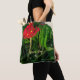 Bilden på denna Tote Bag är gjord av ett originalfoto av ZoeSPEAK från en tropisk korallfabrik, även kallad koral handflatan. Fotot är en avskärning som visar detaljerna för den böjande grönten löv och djuplaxrött med liten gula blommor. Det finns valfri text (Grönt Bag) som du kan anpassa eller ta bort om du vill.