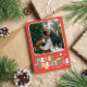 Groovy retro 60-talet inspirerade till ett julfotokort i korallrött som trycktes med ditt foto i ram med rundade hörn och ett roligtens återbildsteckensnitt.