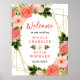 This beautiful and elegant wedding welcome sign features watercolor coral pink red roses and foliage. The text combines handwritten script and serif fonts for a stylish and modern look. This is perfect for a spring or summer rustic wedding.