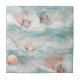 Coral Reef Seashells & Aqua Waves Pattern (9) Kakelplatta