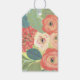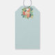 Korallblommor med abstrakt blå och grönt löv på blek blå.