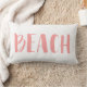 Perfekt för ditt strö- eller sittområde - denna rosa av korall och den vita stranden i stranden dekorativ kudde gör en underbar accent för ditt hems dekoration. Kusthuset eller strandhuset dekorativ kudde har ord "Beach" på framsidan och en rosa och vit nautiska rand på baksidan.