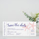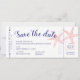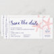 En elegant färgfull besparing datumkortet som ser ut som ett boardingkort eller återtryckt flygplan biljett, med korall rosa och marin blå stjärnfisk. Utrymme för reseinformation på baksidan eller radera om den inte behövs. Markera den nya färgen genom att klicka på "anpassa ytterligare". Fler alternativ för färg och stil finns i Anpassningsbarna Papper Works Oberoende Designer Zazzle Shop.