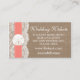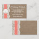 Samlingen av korallsand-dollarns bröllop är en fantastisk design med en underbar rustik-spiralbakgrund med en romantisk vintage vit snöre-effektstam avslutat med ett bedövande sand-dollar och korallribbon. De här bröllop-webbplatsens inmatningskort kan vara personlig för ditt särskilda tillfälle och skulle göra perfekten till matchande inmatning för alla rustiska bröllopssviter, möhippa, förlovningsfest, födelsedagsfest och mycket, mycket mer. Dessa kort kan användas för att skapa detaljkort, gästinformationskort, boendekort, riktningskort, gifttkort eller vältkort samt Ceremoni- och mottagningskort. *Observera att Zazzle endast säljer tryckta kort, så att dessa kort inte har något riktigt material som täcker snöre, sand-dollar eller band.