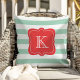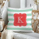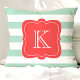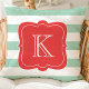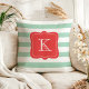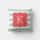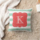 Lägg till en färgklick och personlig touch i ditt hem med denna snygga korall- och sjögröna randiga prydnadskudde. Med ett djärvt monogram i en dekorativ korallfärgad ram är denna kudde perfekt för att tillföra en touch av elegans till coastal- eller modern inredning. Anpassa den med din initial för en unik accent som förhöjer ditt vardagsrum, sovrum eller lounge.