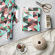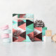 Denna papper har en Memphis stil-triangel mönster i den tropiska korallen och teal färg. Formen Florida stil har många geometriska former av mönster i trianglarna tillsammans med Miami handflatan löv som är spridda över mönster. Du kan göra mönster på presenten papper större eller mindre. Den här pappra inslagningen gör en snyggt som täcker alla gåvor som din ge ger till någon som kärlek ser ut som 80-talet Memphis stil.