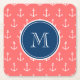 Coral White Anchors Mönster, Navy Blue Monogram Underlägg Papper Kvadrat