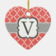 Coral White Monogram Brev V Quatrefoliil Julgransprydnad Keramik