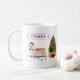 Könsrasen Corgi hund och träd är klädda för nyår och julhelg. Barka ditt julmeddelande med den här gåvan för att säga Glad helg!
