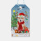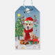 En hund i snö med julklappar och snö fall är en perfekt gåva till någon som kärlek hundar.