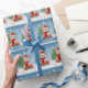 En hund i snö med julklappar och snö fall är en perfekt gåva till någon som kärlek hundar.