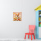 Corgi hund krans av solrosor väggkonst dekoration, Glad corgi hund krans av tusenskönor och solrosor, med överdrivna stora ögon och en hängande tunga. Platt vektorstil konst i varma toner (rost, kräm, senap) på en mjuk persikofärgad bakgrund.