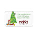På dessa returetiketter finns en bild av en söt Pembroke Welsh Corgi som har lyckats slå sig in i en sträng av jul-ljus. hund finns bland skarpt inslagna gåvor till paket bredvid ett dekorerat Julgran. En bullfinkfågel landar på träd. Din anpassningsbar är i grönt vid bildens höger och stiliserad text på grund säger GOD JUL".