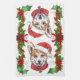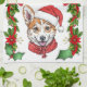 Cute corgi i en julhatt med julgrå, holly, bows och poinsettias. Röd och Grönt.