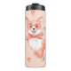 Cute Corgi, med glasögon för hjärtform och dans. Rosa bakgrund.