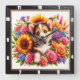 Corgi Puppy Blommigt Garden Fyrkantig Klocka