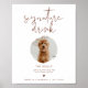 Denna signaturdrycksskylt har en bildplats, ett kantigt handskrivet teckensnitt och en modern minimalistisk design med en boho-rost och vit färgkombination. Ändra enkelt teckensnitt och bakgrundsfärg för att matcha din händelse. Denna skylt är perfekt för att lägga till antingen ett foto av bruden och brudgummen, ungarna eller ditt favoritfamiljedjur.