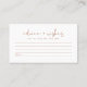Detta nya råd och önskemål-kort har ett edgy handskrivet typsnitt och modern minimalistisk utformning med en kombination av boho terracotta och vit färg. Den här minimalistiska utformningen är perfekt för din moderna eller klassiska möhippa, par-dusch eller bröllop-händelse. Redigera enkelt all färg för att uppfylla behoven för evenemanget.