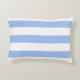 Klassisk, enkel, bred, utomhuskudde av vågrät rand i kornblomsblå och vit. Dekorkudde med Vågrät parallellt med rand i ljusblått och vitt färg